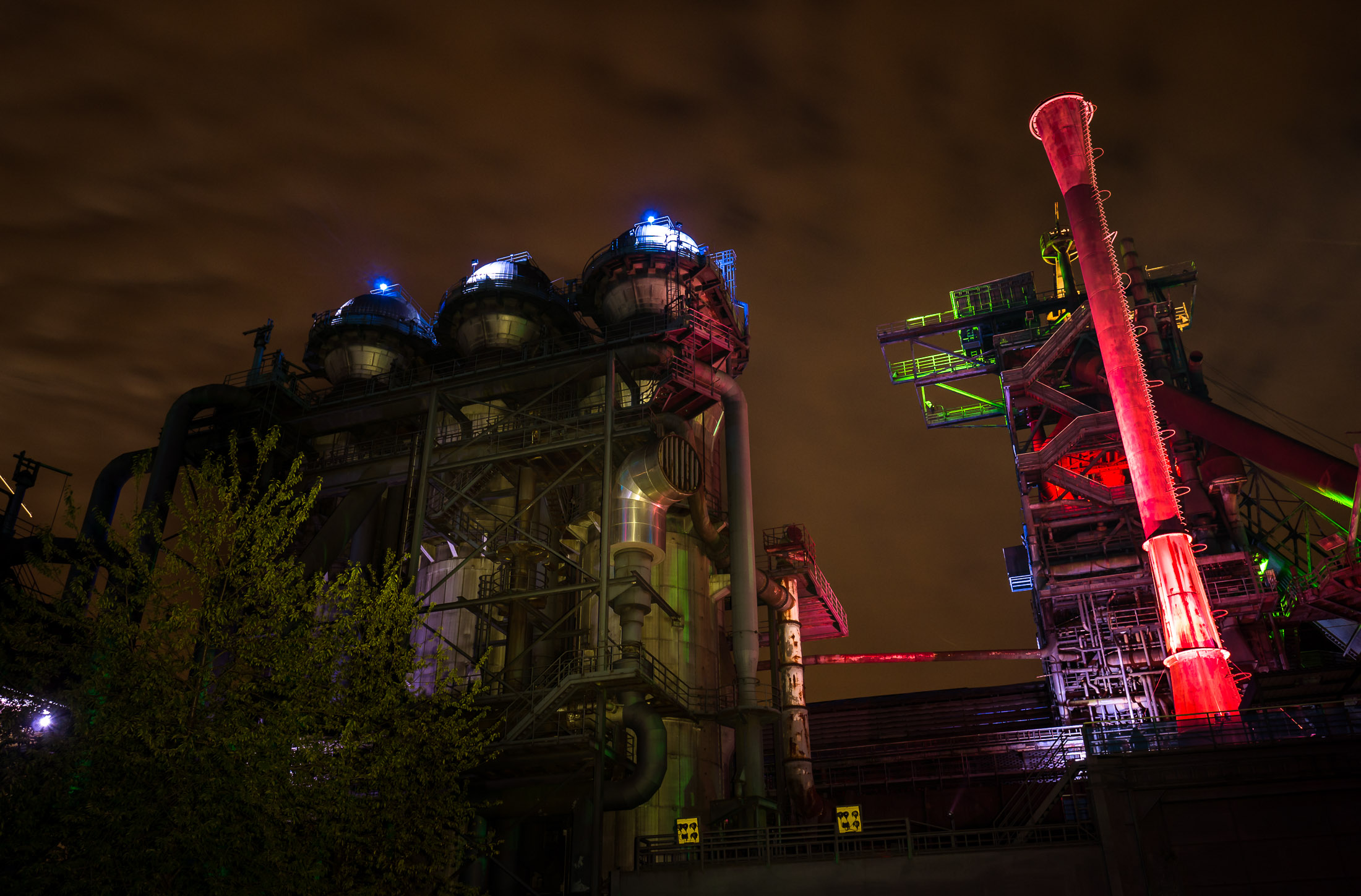 - beliebtes Fotomotiv bei nächtlicher Beleuchtung der Industrieanlagen